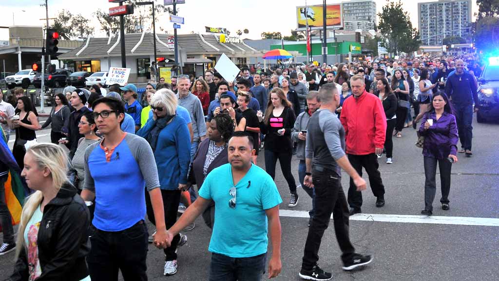 Admitting that Orlando shattered “our sense of security — even 3,000 miles away,” Gloria at the LGBT center urged San Diego’s gay community to “show up” at local bars and businesses.