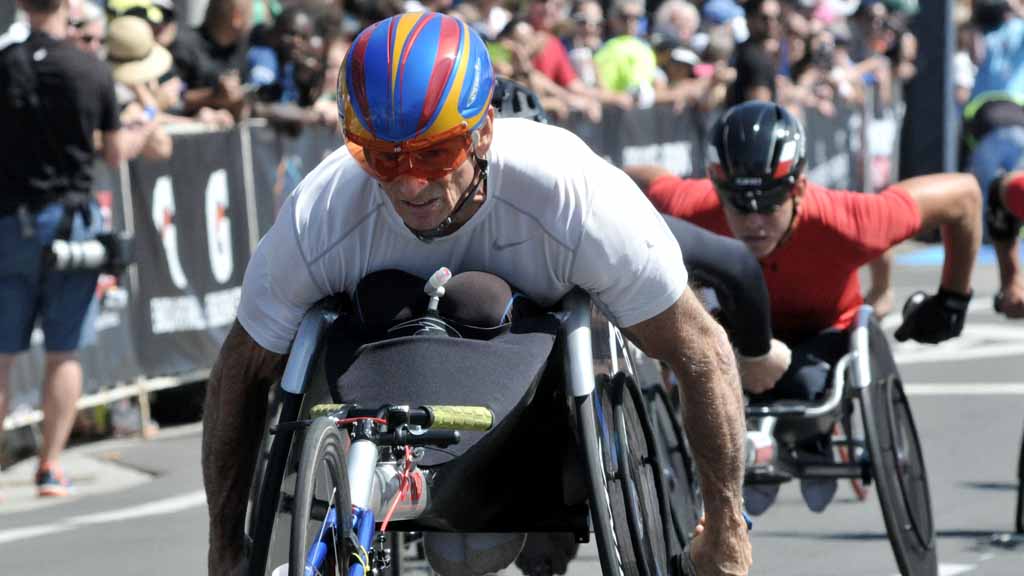 Paralympic legend Josh George, 31, edged fellow Champaign, Illinois, racer James Senbeta, 23, in the men’s wheelchair division, 10:34 to 10:36, while Boston Marathon winner Shirley Reilly, 23, of Tucson nipped Amanda McGrory, 28, of Savoy, Illinois, by a second — 12:17 to 12:18.