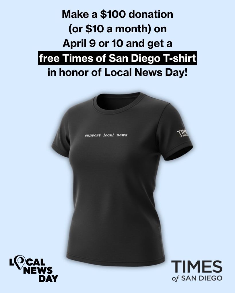 Last chance! Show your support for local news — and get a free Times of San Diego T-shirt.